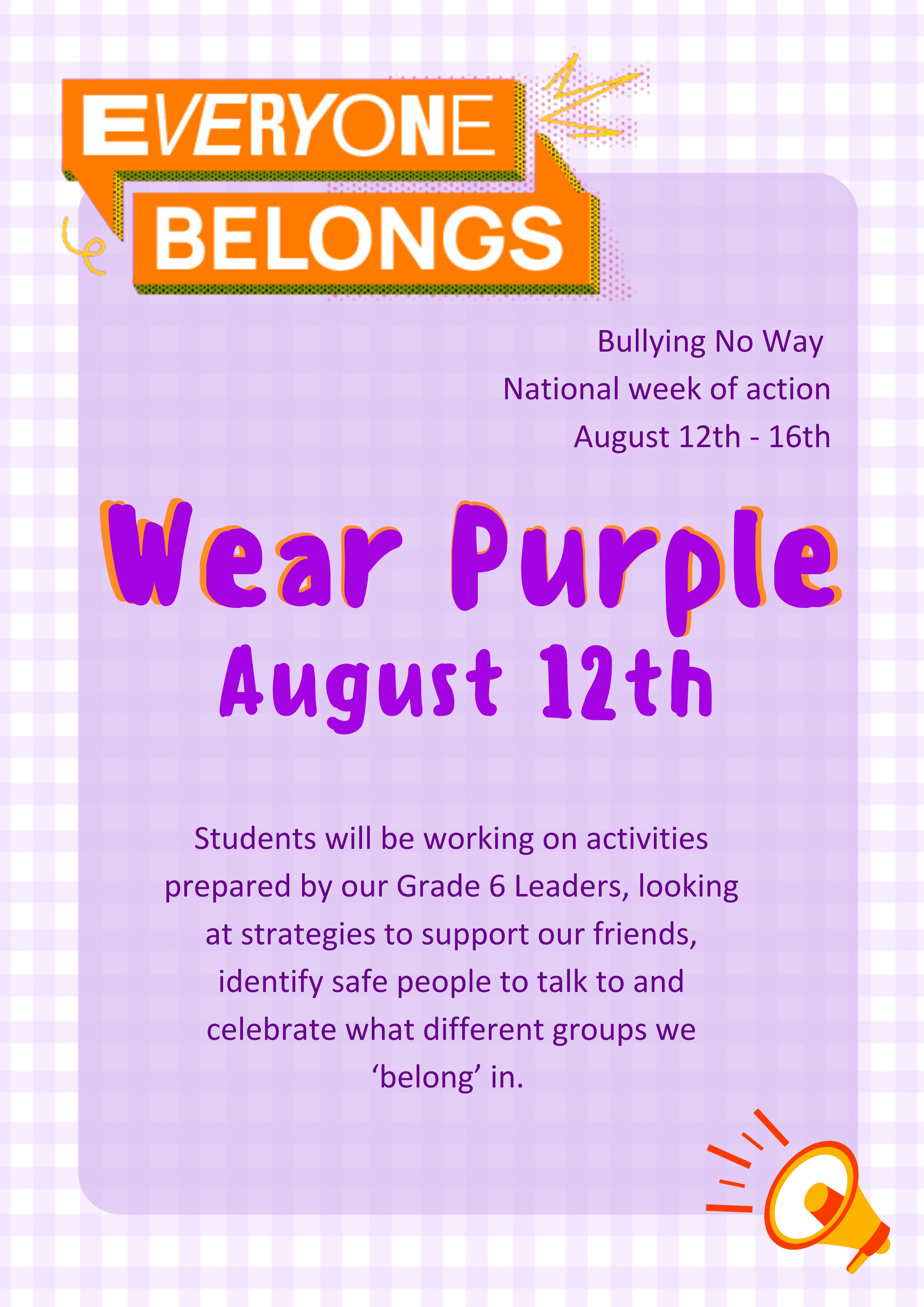 Wear Purple on August 12th to support Bully No Way National week of action.