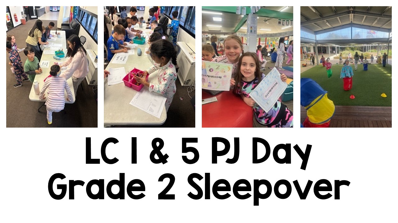 Grade 2 Students enjoyed a Sleepover at School and were joined on Friday by the Grade 1's for a Pyjama Day. It was smiles all round.