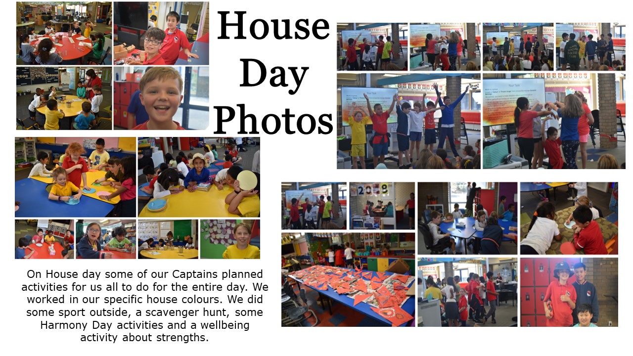 On House day some of our Captains planned activities for us all to do for the entire day. We worked in our specific house colours. We did some sport outside, a scavenger hunt, some Harmony Day activities and a wellbeing activity about strengths.