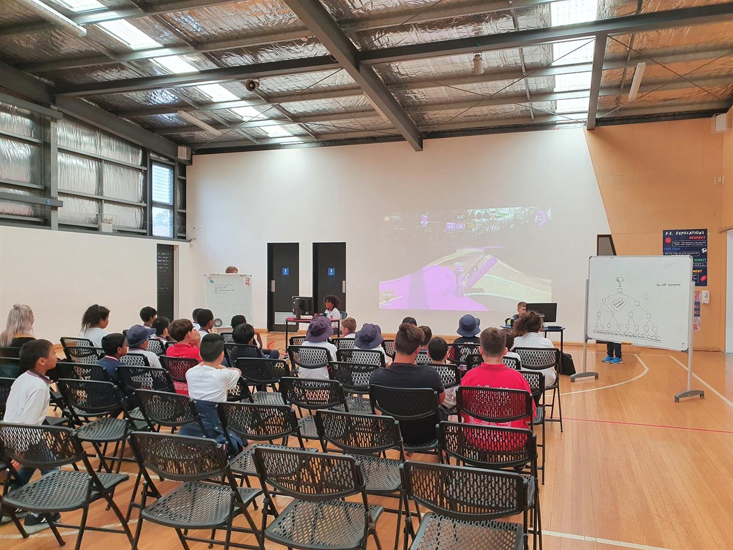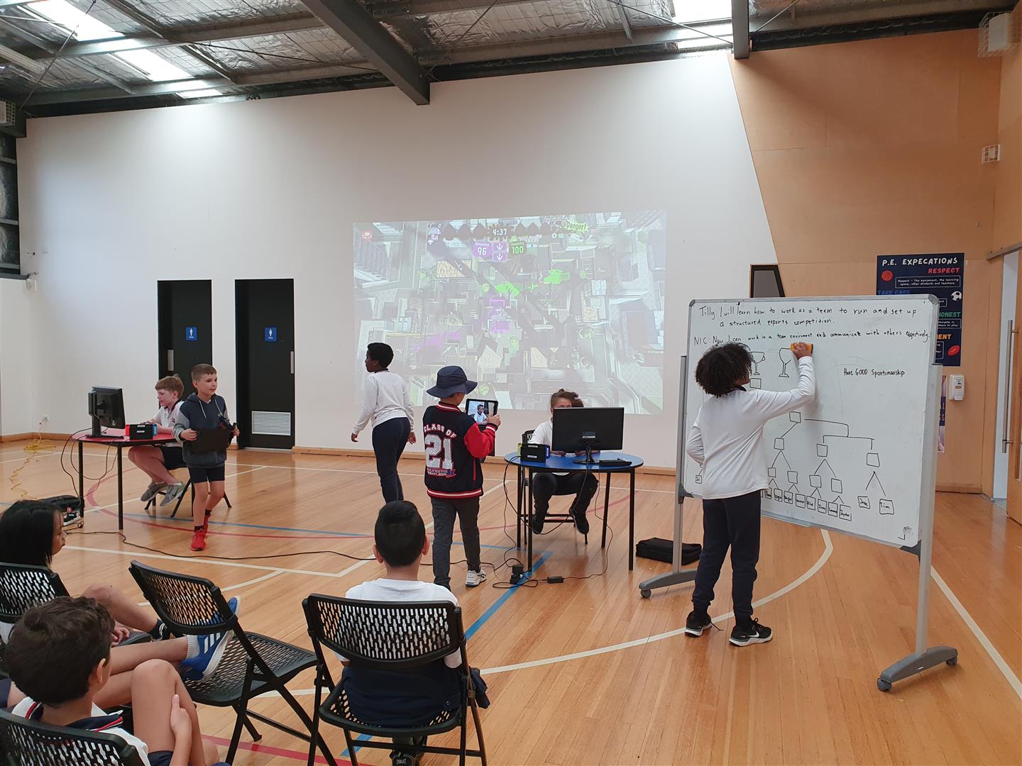 During Term 1, the eSports Reality Group have been working towards creating an esports showcase within the school which took on the structure of a mini tournament. The game of choice was Splatoon 2. The students in the esports Reality Group worked as a team to help set up, run and pack up the event while also participating. They showed a tremendous level of responsibility, sportsmanship and critical thinking throughout this student-led project of theirs.The students themselves became proactive event managers as they delegated and took on different roles to which led to a successful event. The main focus of the showcase was to promote positive gaming habits. This was done through a high level of sportsmanship as players shook hands, congratulated each other and cheered each other on regardless of who was winning or losing.Some of the roles included students taking photos and videos of the event, students designing trophies using a 3D modelling program and then printing them out with a 3D printer, updating the tournament brackets and letting the audience know who was playing next, help set up the game so that players can jump straight into the action, shoutcasters/commentators who's job is to talk about the game as it is unfolding in an engaging way, furniture set up with chairs, tables and whiteboards as well as packing them up at the end.