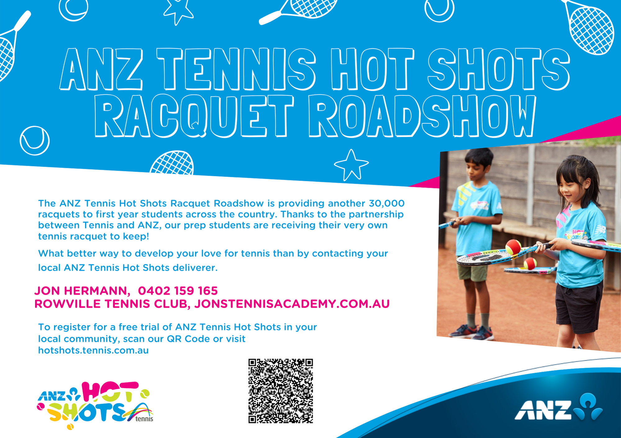 Thanks to ANZ and Tennis Australia all of Foundatin Students are to recieve a FREE Tennis Racquet!